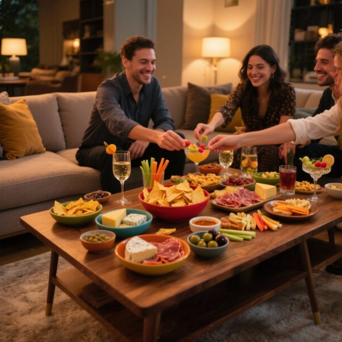 Em um caso prático, uma anfitriã realizou uma noite de filmes com petiscos variados feitos em casa, priorizando opções assadas e molhos especiais. Entre as receitas, estavam mini quiches de alho-poró, pastel de forno, espetinhos caprese e pipoca gourmet com ervas.